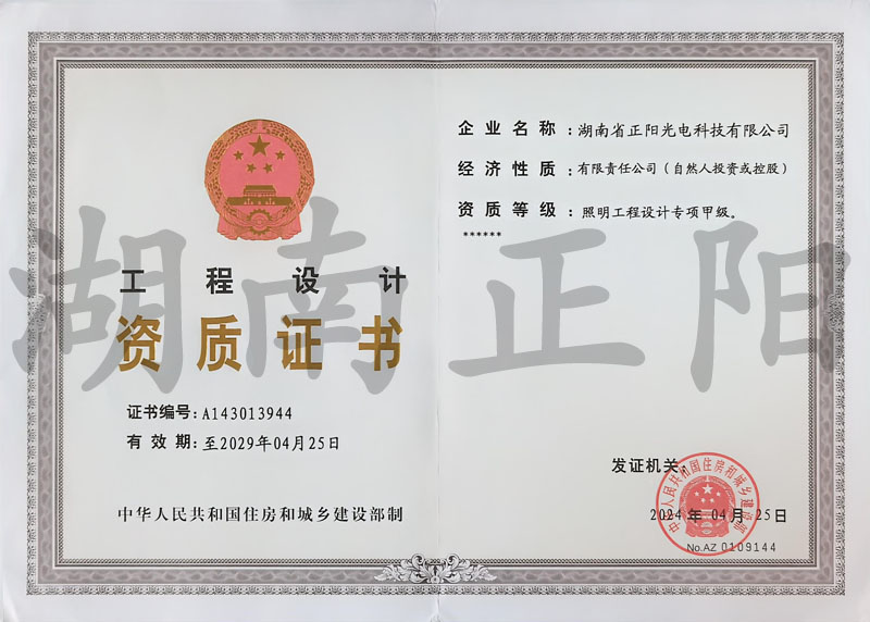 • 照明工程設計專項甲級資質